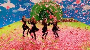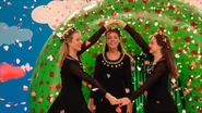 Fairy Clare and Fairy Larissa curtsying their Irish Dancing sparkly and glittery fairy dresses