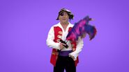1995-1997: Captain is now played by Paul Paddick and has purple and black on his feathersword. His eyepatch was moved to his right eye from his left. His hat is also smaller and has black and red, but can barely be seen due to the placement of the feathers.