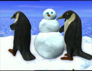 The little penguins destroying the snowman