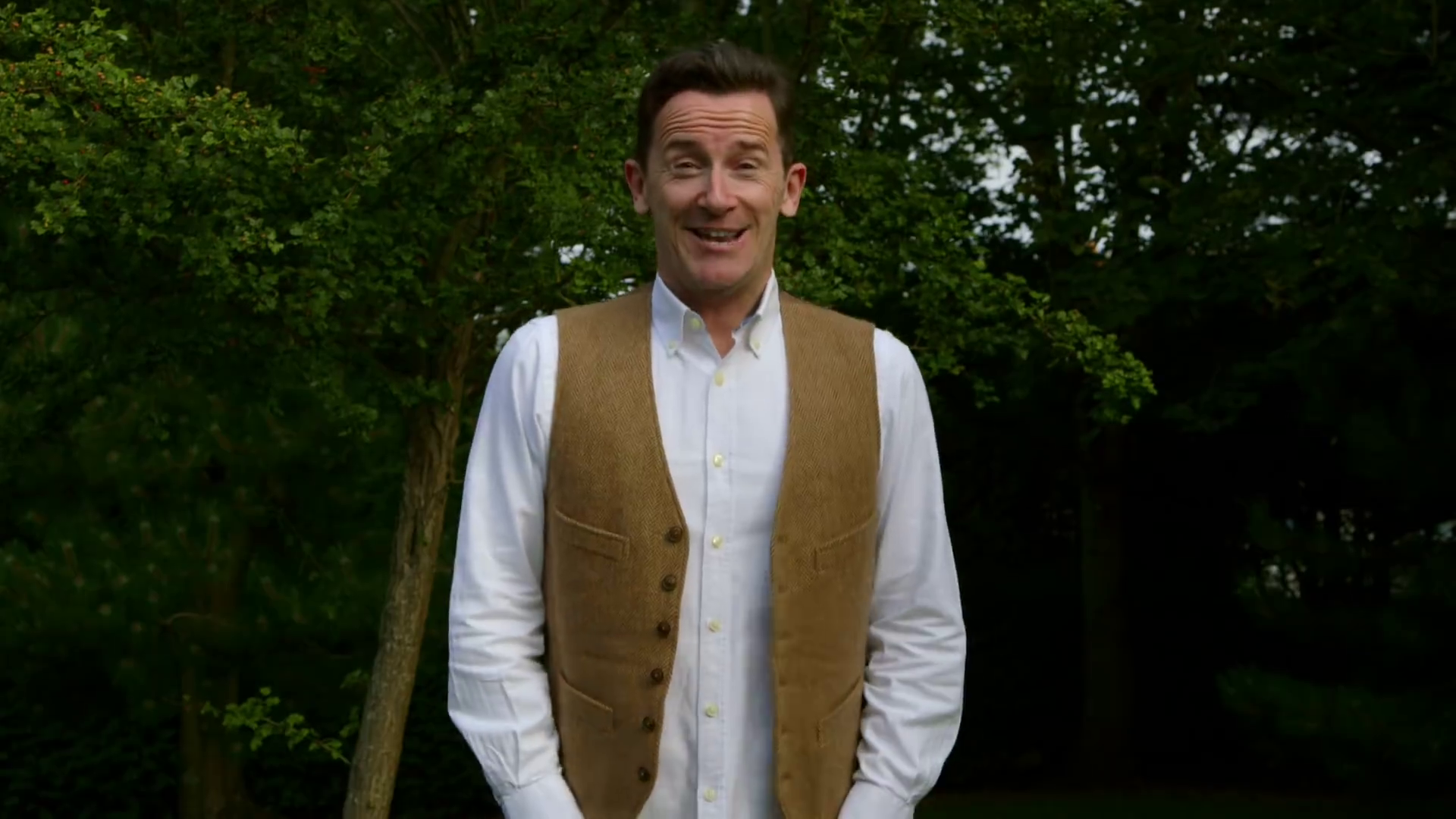 Crowley filling in for Anthony Field (bottom right) for a promotional photo.