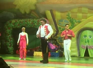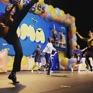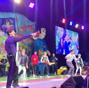 During concerts, the dancers will often greet the audience, present safety information and other announcements before the show starts, go into the crowd to collect presents for the Wiggly Friends (i.e. roses for Dorothy the Dinosaur) or safely escort the friends through the crowd while greeting the audience.