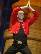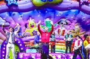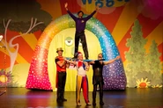 Both the red jackets and the multi-Wiggle-colored striped pants were last seen in Wiggledancing! Live in Concert; however, they would later be worn by performers and show hosts at Dreamworld and Six Flags. The red jackets by themselves have also been worn by backing musicians during various performances, most notably the 2011 iTunes Live EP, the 2016 reunion shows. and concerts from 2022 onward.