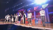 Starting from 2018 onward, they started appearing in white shirts with denim vests and pants covered in flowers; from 2019 onward, they also started wearing pink shirts and white pants (male dancers) and pink feathery overalls and white shirts (female dancers).